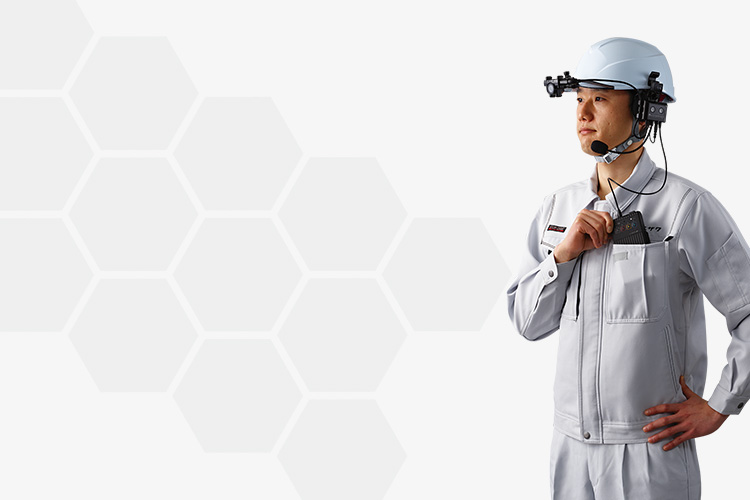ハンズフリーで使えるヘルメット装着型カメラと音声通話で、作業現場の状況を遠隔地にいる管理者にリアルタイム配信できます。